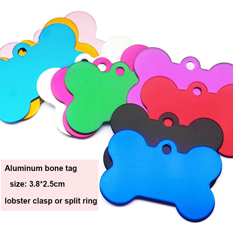 Low cost for pets id tags, multiple colors available for color coding, safety warnings, durable but lightweight, anodized aluminum would be the best choice.